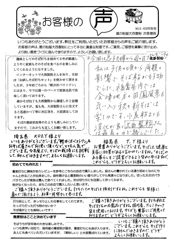 お客様の声 No.5 2017年秋号[蔵の粉屋大西製粉]