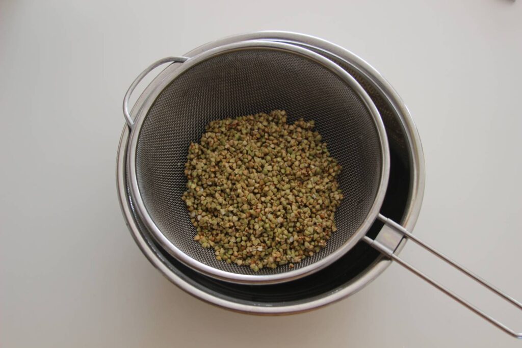 1、そばの実を水で洗い、しっかり水気を切ります。