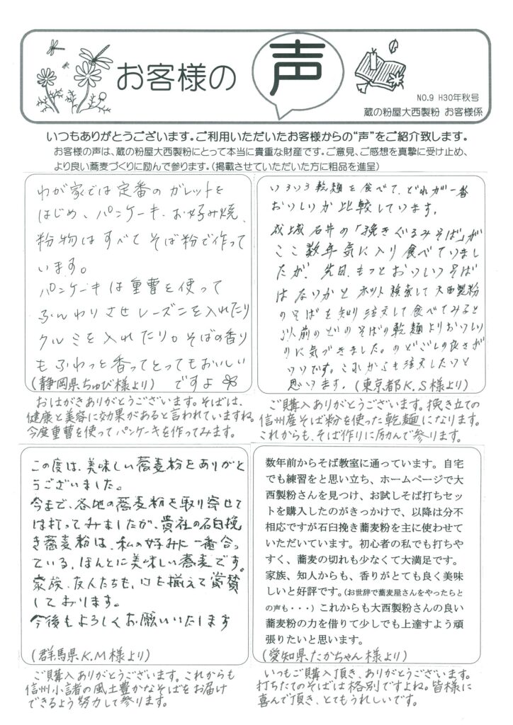 お客様の声 No.9 2018年秋号 [蔵の粉屋大西製粉]