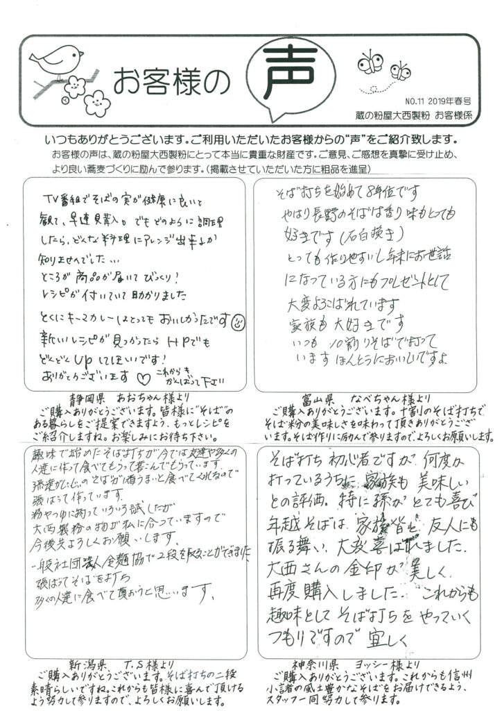 お客様の声 No.11 2019年春号 [蔵の粉屋大西製粉]