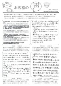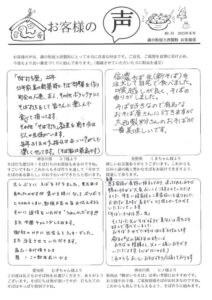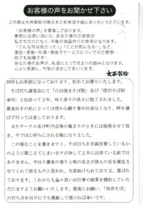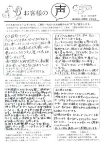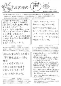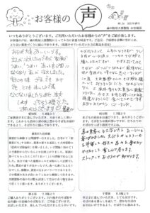 多くのお客様から暖かい応援のメッセージを頂きました。