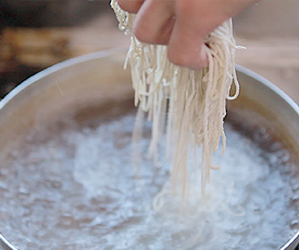 茹でると、麺にコシが出ますよね。