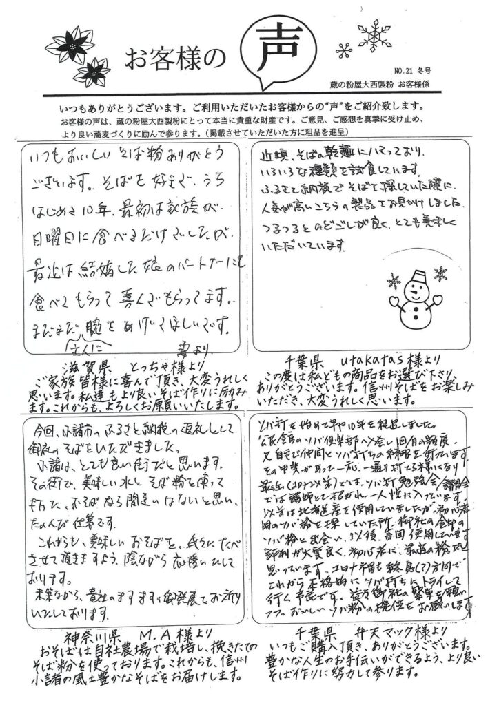 お客様の声 No.21 2021年冬号 [蔵の粉屋大西製粉]