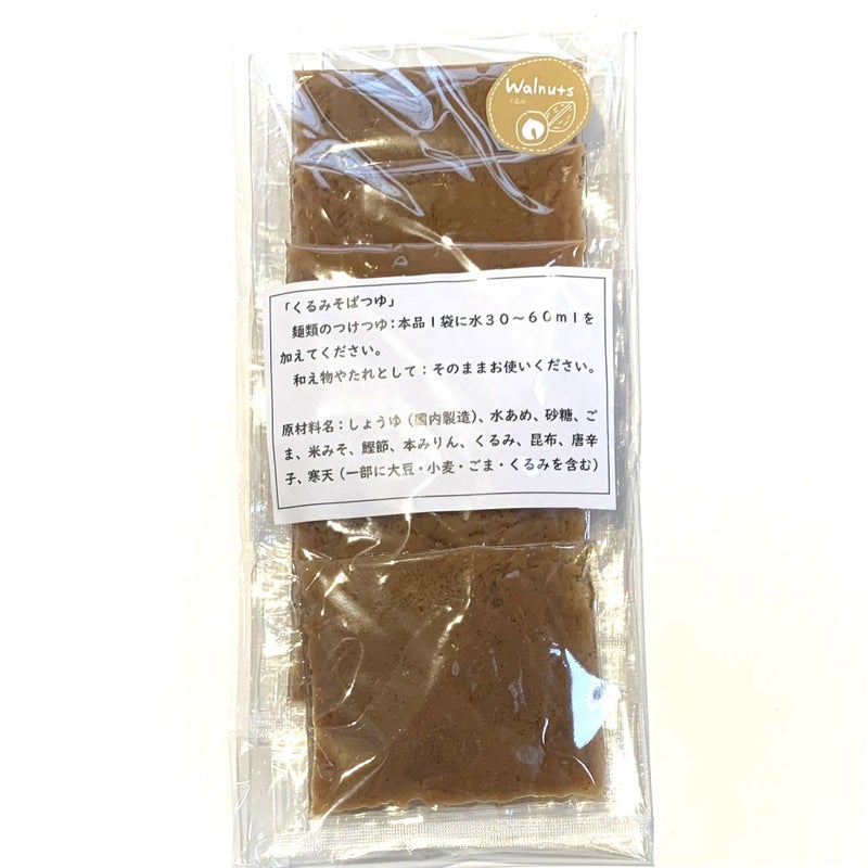 | 商品説明 | 便利な小袋パック。1袋1人前です。ごまと味噌、くるみがたっぷり入ったつゆ(2倍濃縮)そば、うどん等の麺つゆはもちろん、和え物やドレッシングにもごまとくるみの香りと味噌の旨みが引き立つ郷土の味です |
